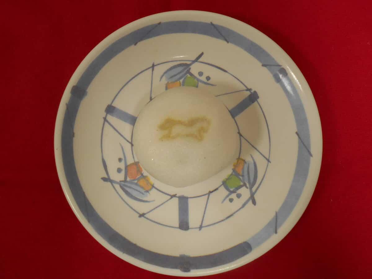元旦の日は、朝食・昼食におせち料理、おやつには午の印がついたお饅頭がでました。