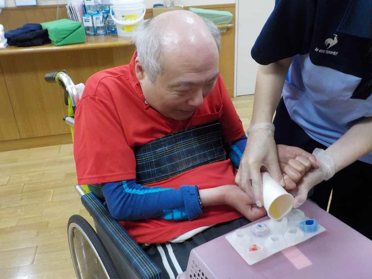 障害者支援施設では、今年の秋祭りで販売する石鹸をつくりました。