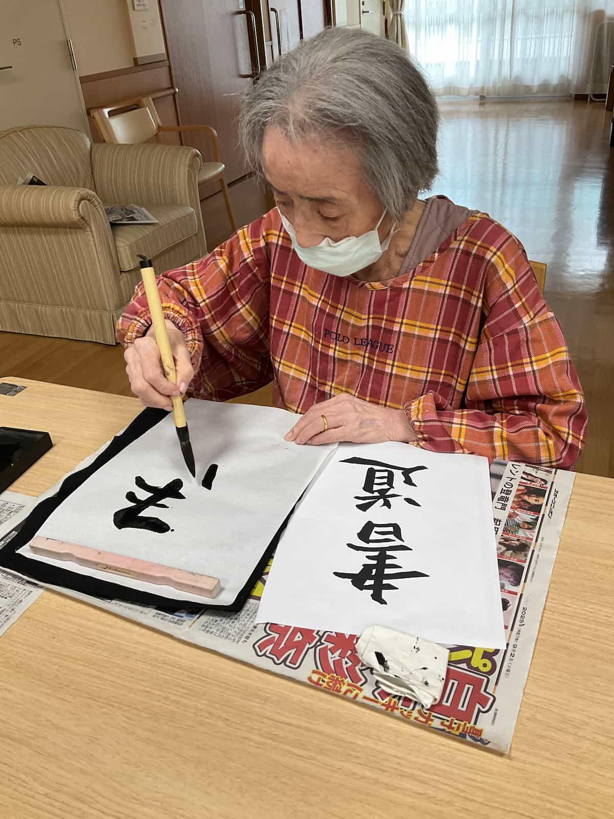 ケアハウスでは新たな余暇活動として書道を開始しました。