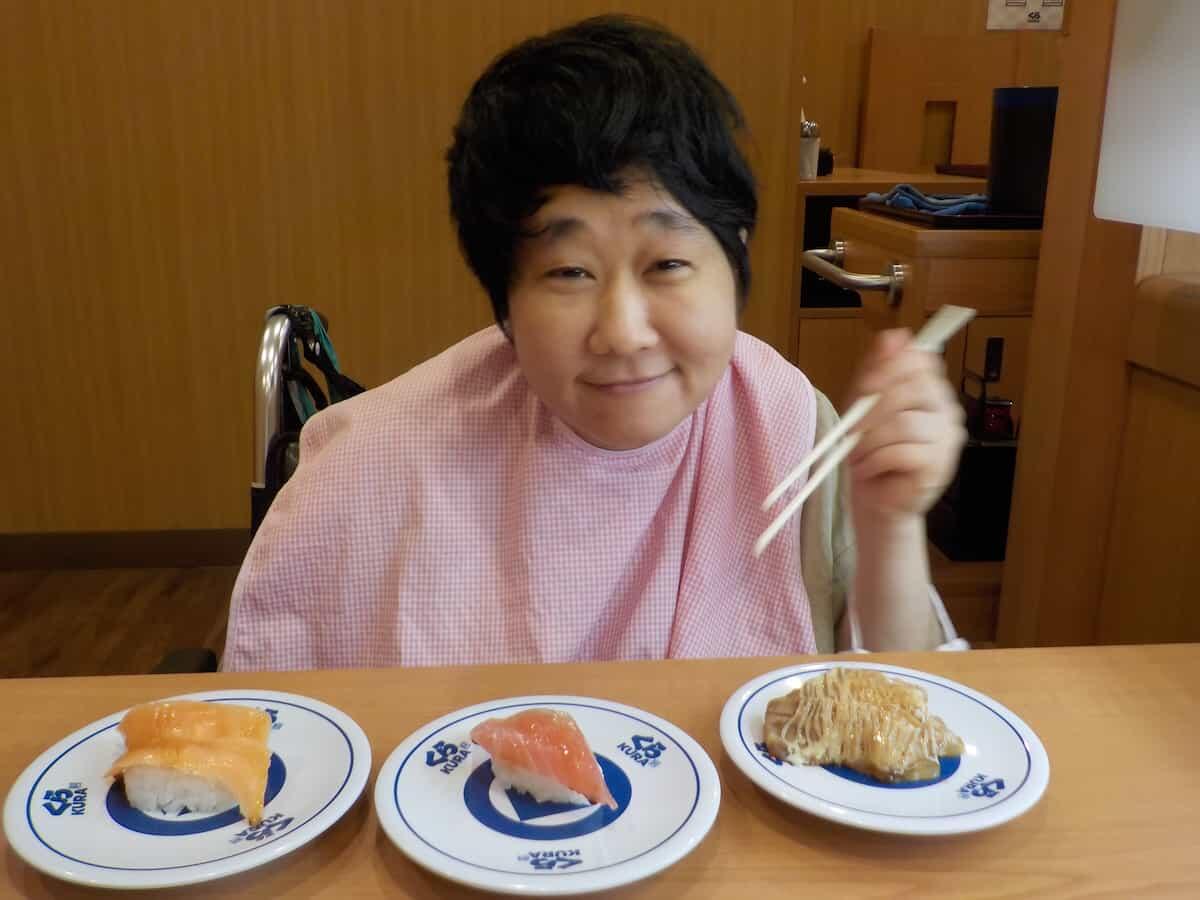 お寿司は、利用者様たっての希望です。施設内で生ものを食することは、なかなか難しいこともあり、「まだか、まだか」とこの日を待ち望んでいらっしゃいました。