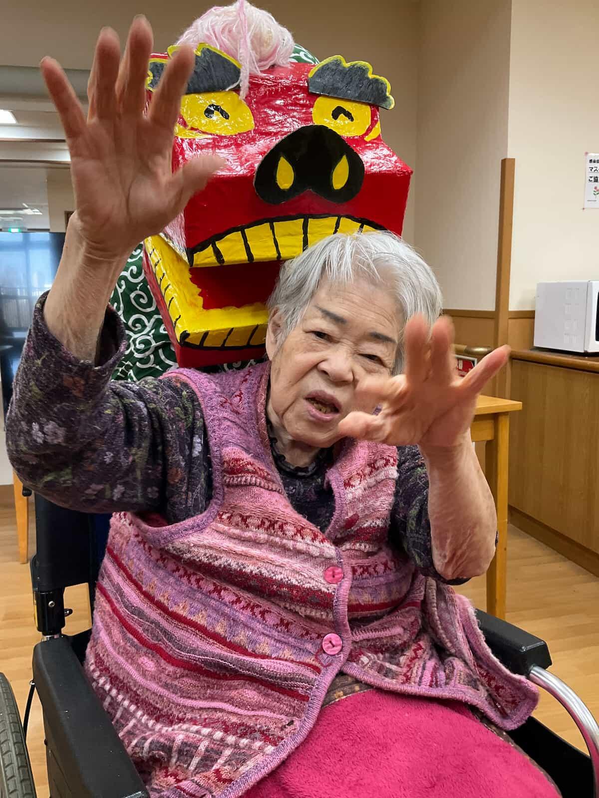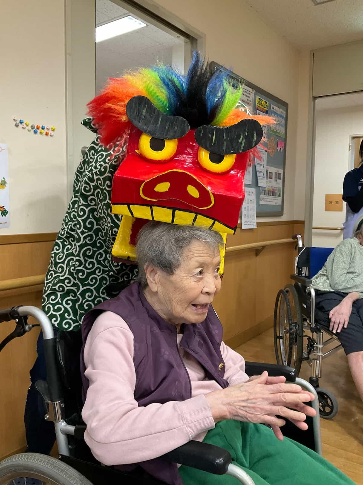 また、新年会では職員が獅子舞に化け、ご利用者様の頭を嚙んで周りました。