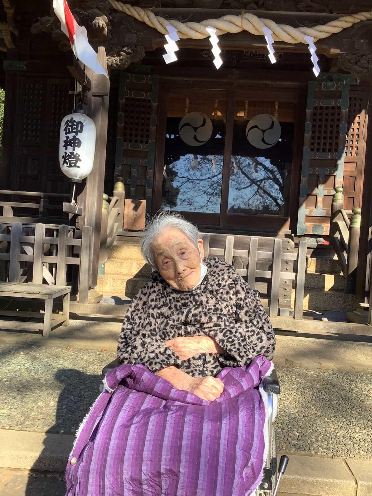 神社へ行けなかったご利用者様も施設内に建てた鳥居の前でお詣りされました。