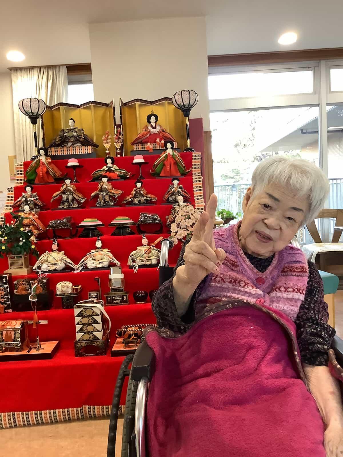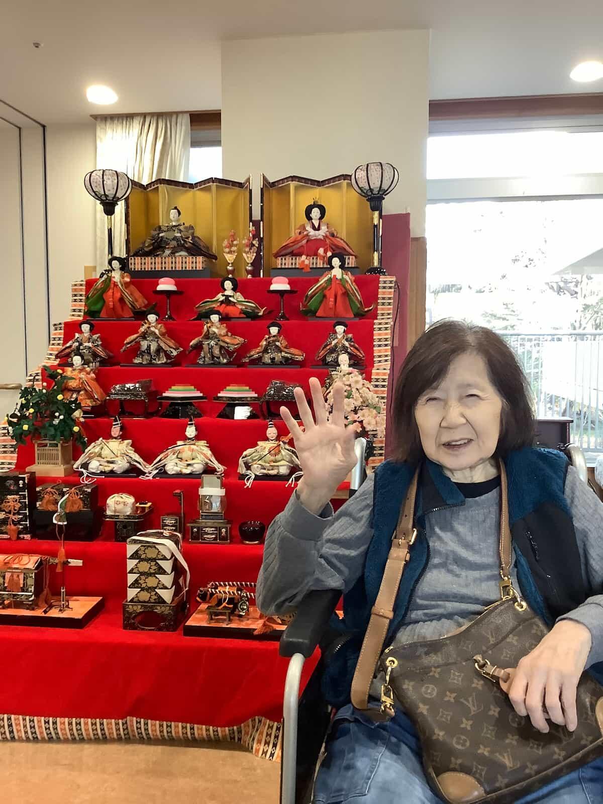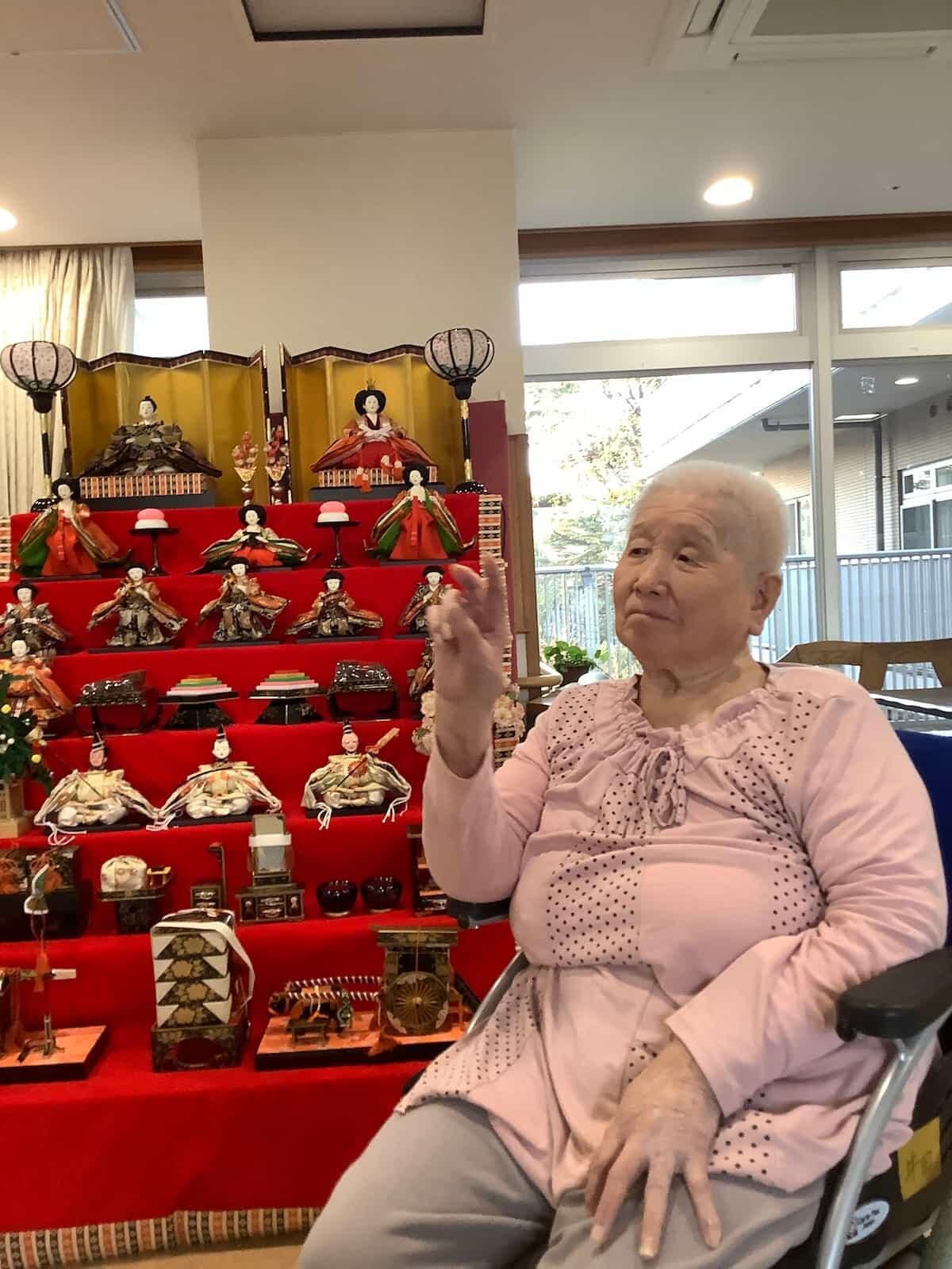 たくさんの雛壇を見て、「わあ、3月なのね。雛人形すごいわね。うちにもこれくらいの雛壇あったのよ。」と話され喜んでいる利用者様がいらっしゃいました。