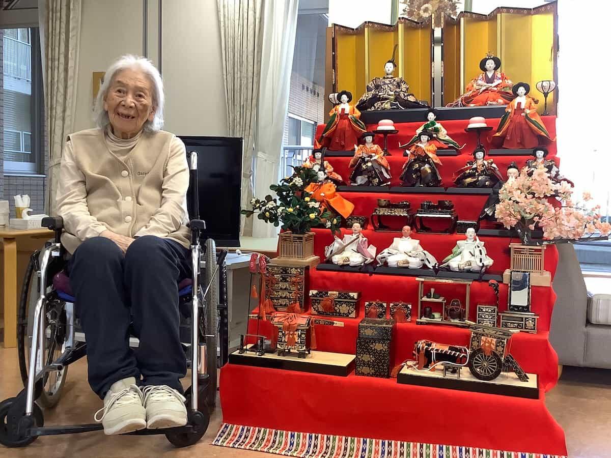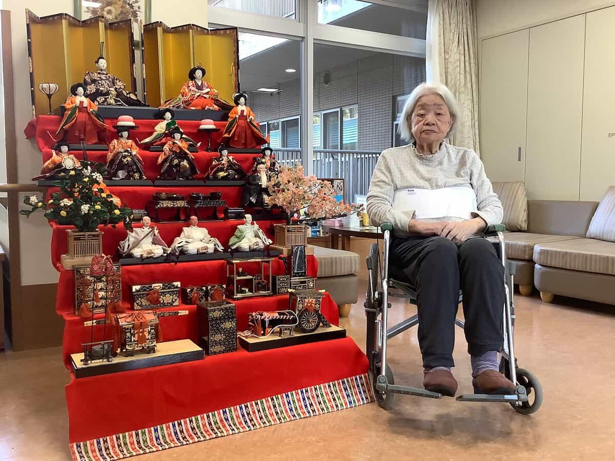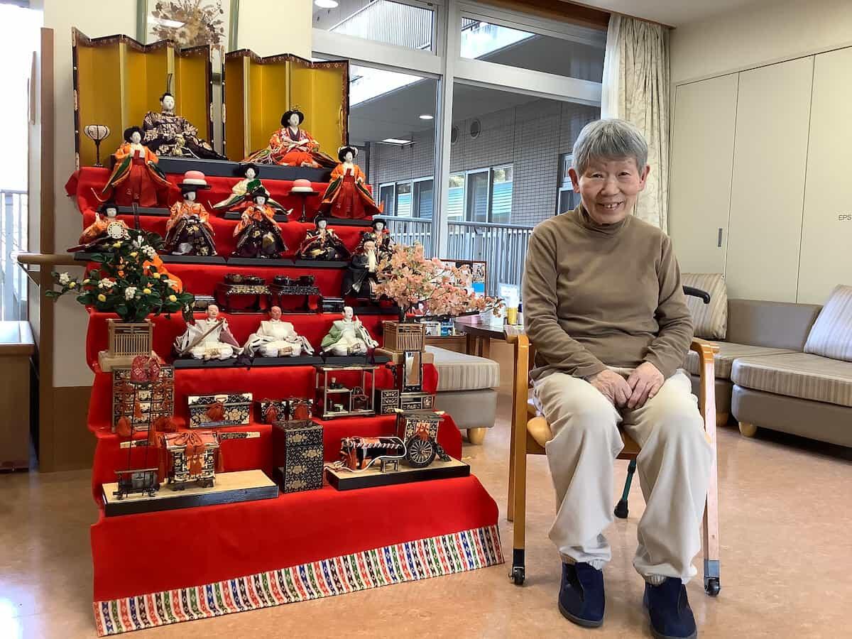 そんな老健ですが3月中に雛壇を組み立てまして利用者とお写真を撮りました。皆さまお雛様に思い入れがあるのか笑顔で昔話をされていました。