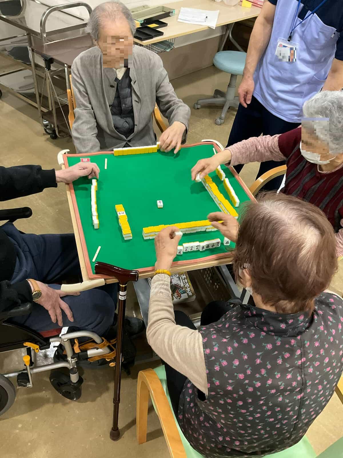本日の選択制プログラムでは、利用者様に、麻雀、将棋、絵葉書作成、ゲームを選んでいただきました。