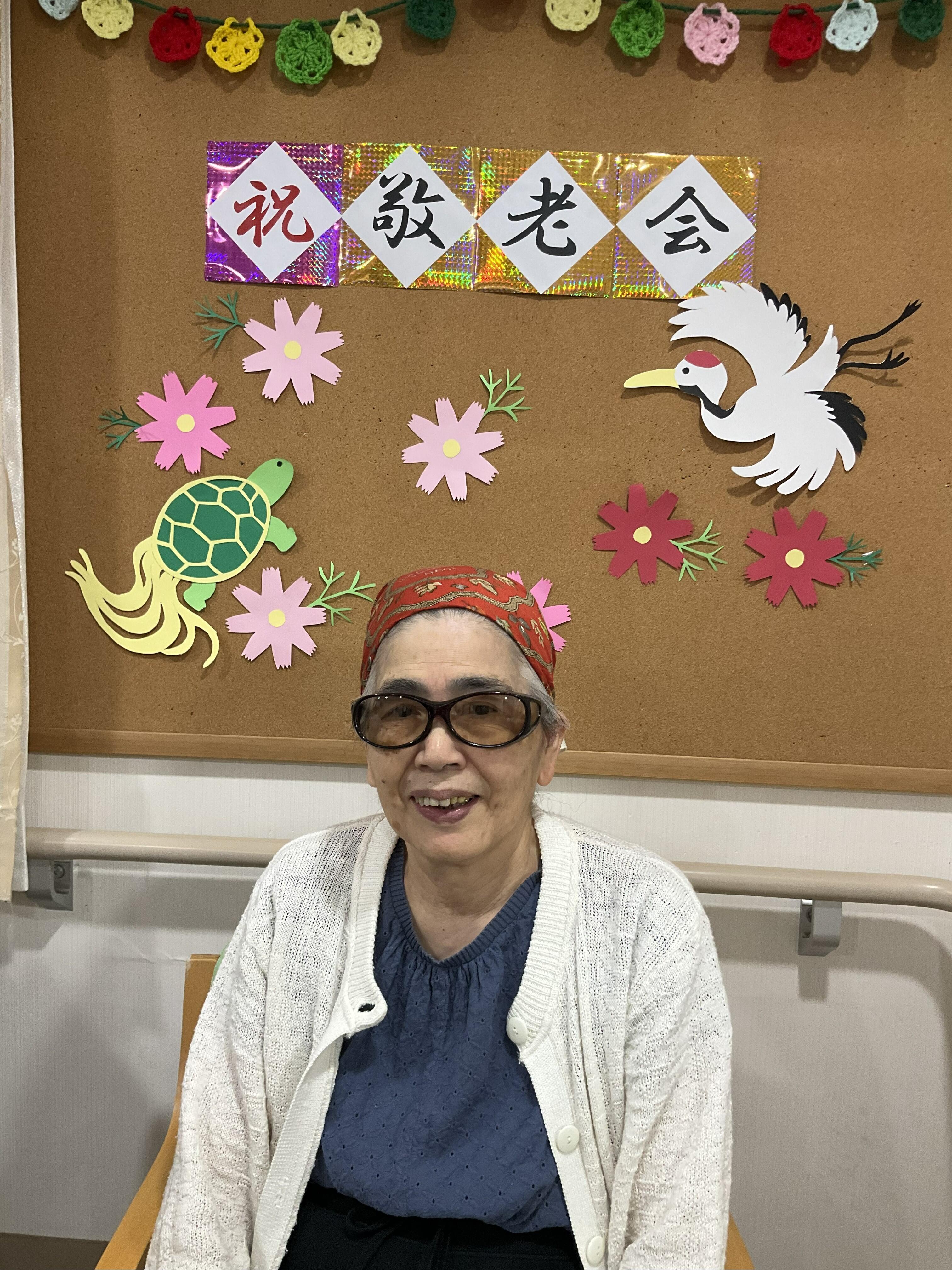ゆずりは 「敬老会」 ゆずりはデイサービスでは9/15~9/20まで敬老会を行いました。節目を迎えた利用者様には記念撮影をして写真を持ち帰って頂きました。「いい写真が撮れましたね」と喜んでくれるご家族もいらっしゃいました。また、職員による三味線、ピアノ、ウクレレ等様々な楽器での演奏会も大変好評で利用者様も手拍子や歌などで一緒に参加してくださいました。 そして毎年恒例のビンゴ大会!職員が数字を読み上げるたびに会場からは「あった」の喜びの声や「数字が1違う」などの落胆する声などが飛び交っていましたが、皆様ビンゴを楽しまれている様子が見られました。今後もゆずりはでは皆様に楽しんで頂けるイベントを用意していきたいと思います。