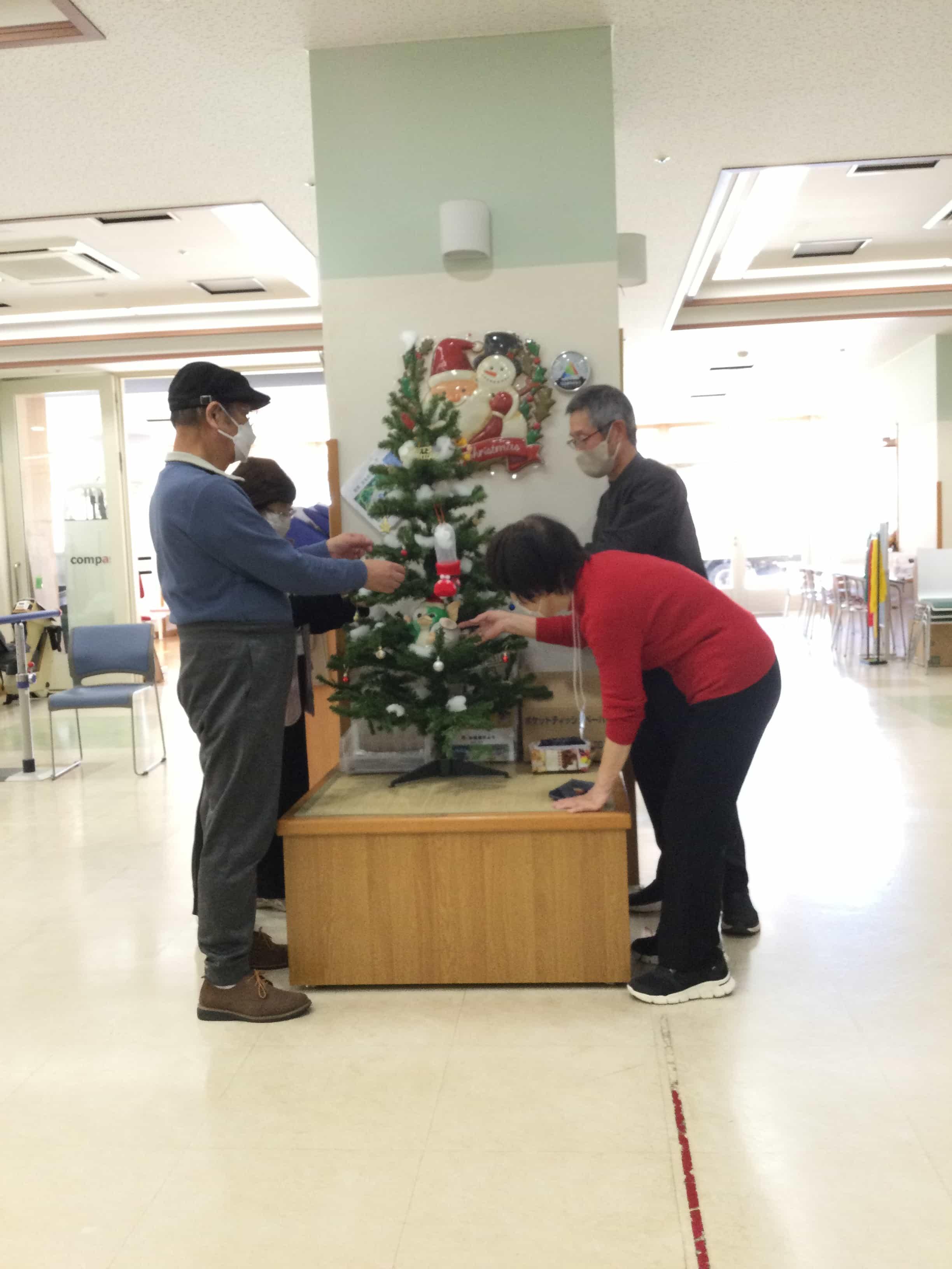 短時間通所リハビリテーション 「クリスマス」 短時間通所リハビリでは12月にクリスマスツリーを出し利用者様に飾り付けをしていただきました!各テーブルと入口に全部で8個!みなさん綺麗に飾り付けしてくれました! 1年があっという間に過ぎました。利用者の方も「早いわね~。」と言う方も多かったです!今年も皆さん楽しく過ごせますように・・・