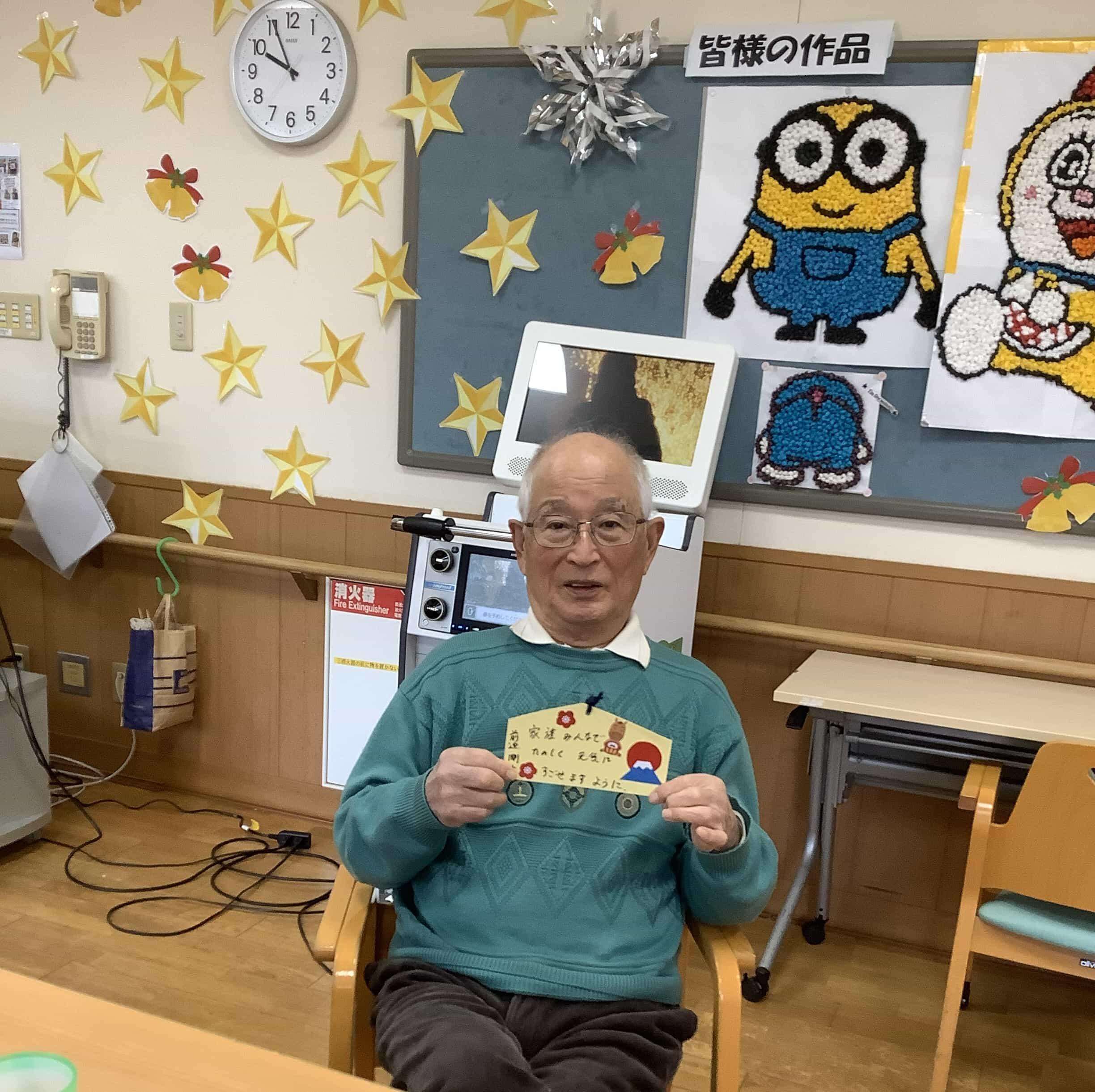 デイサービスセンター江古田の森 「絵馬づくり」 デイサービスセンター江古田の森では、正月の飾り作りで絵馬を制作しました。ひもを通したり、シールを貼ったりして飾りつけた後、思い思いの願い事を絵馬に書いて完成しました。 完成した絵馬を持って記念撮影をしました。 2026年がよい年でありますように。