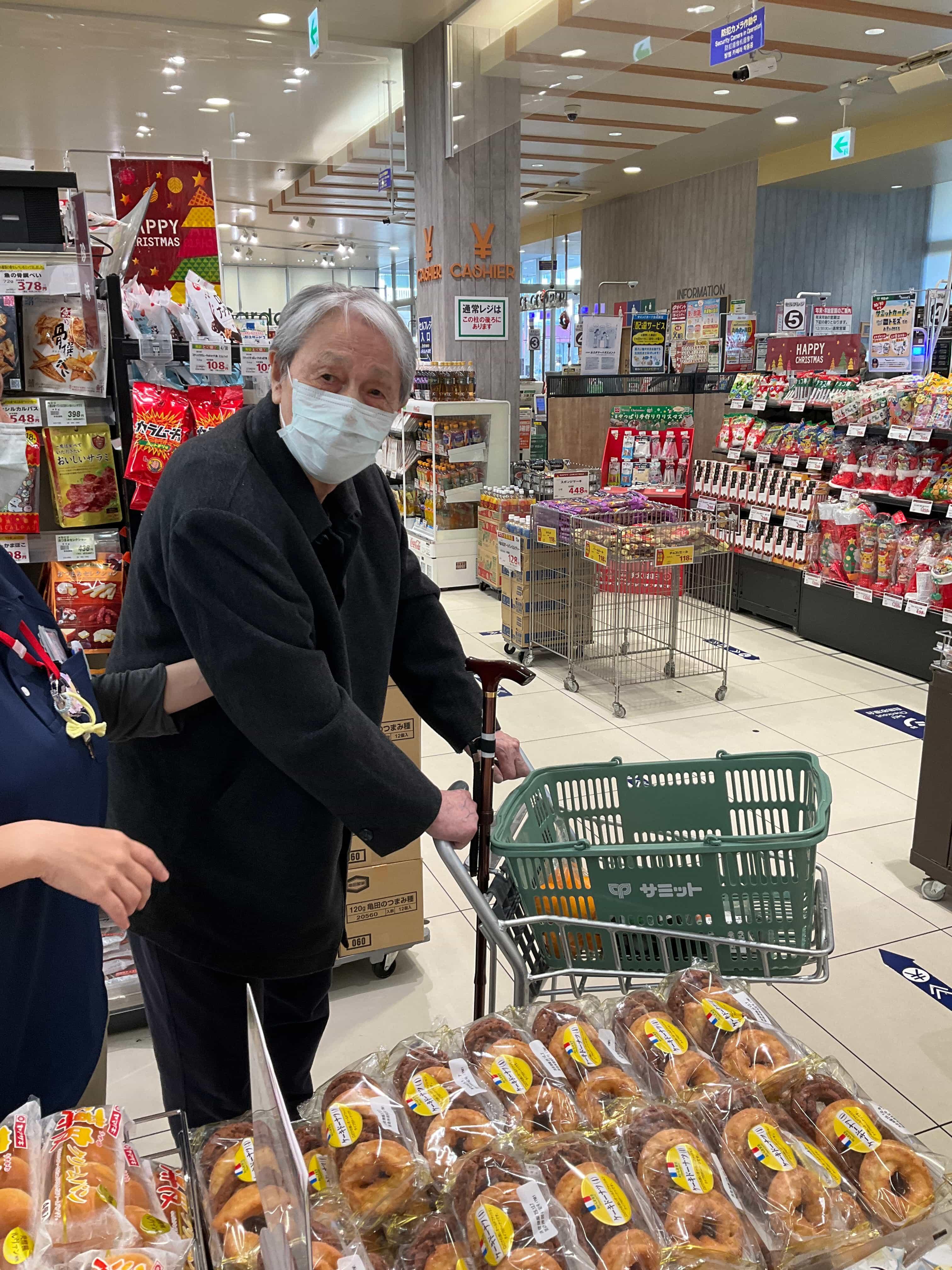 ケアハウス 「買い物行事」 買い物行事で近隣のサミットに行ってきました。品揃え豊富なスーパーでの買い物にテンションが上がり、お寿司やパンなど次々にカゴに入れていました。「近くにこういった店があると助かるよな~。」と、お買い物を楽しまれました。今後も外出行事の企画を検討し、利用者様のリフレッシュとなる時間を設けたいと思います。 |