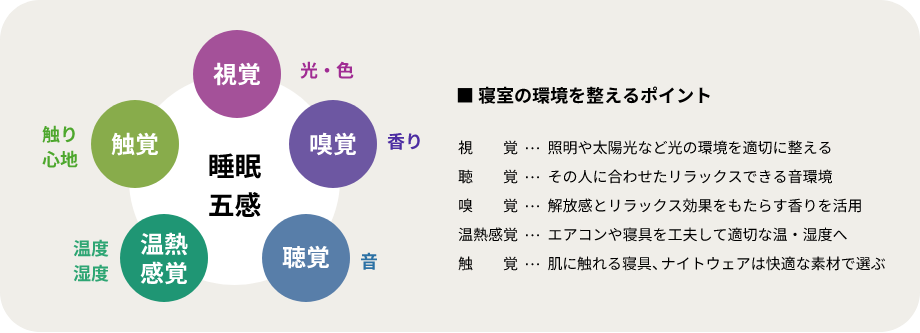 ・ミサワホームHP. "睡眠五感の視点から考える、快眠寝室づくりのコツ",